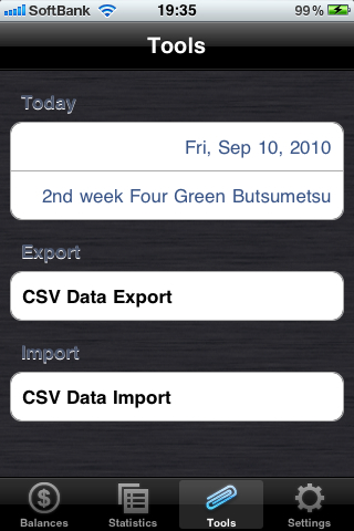 | iOS Version:Version 1.1[16/12/2010] *At the time of income and expenditure data addition, I revise it to choose the date of the last time or a date of the day automatically. *I revise it so that a screen does not turn with some screens. *I add an About screen. |