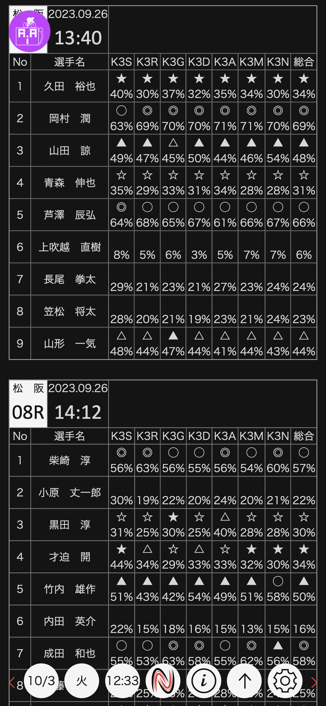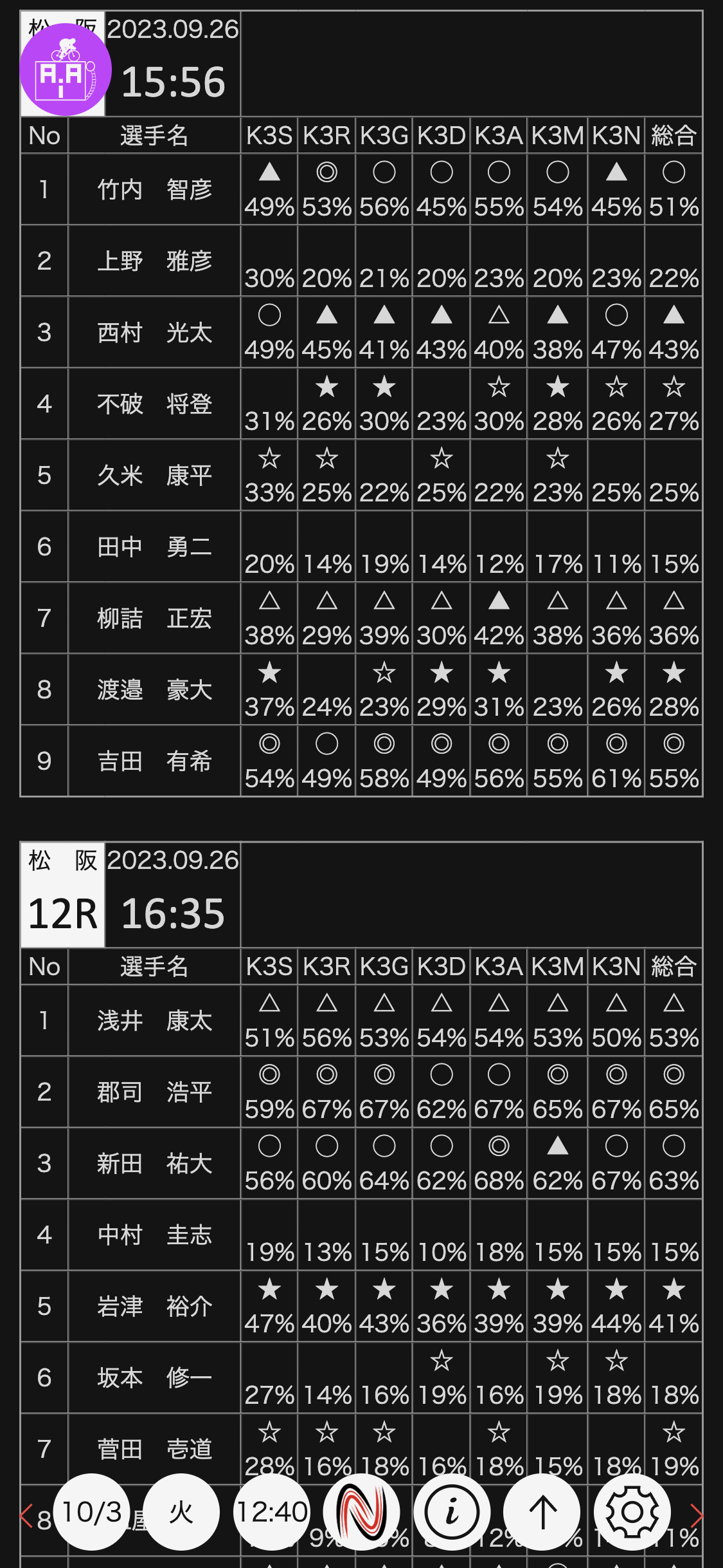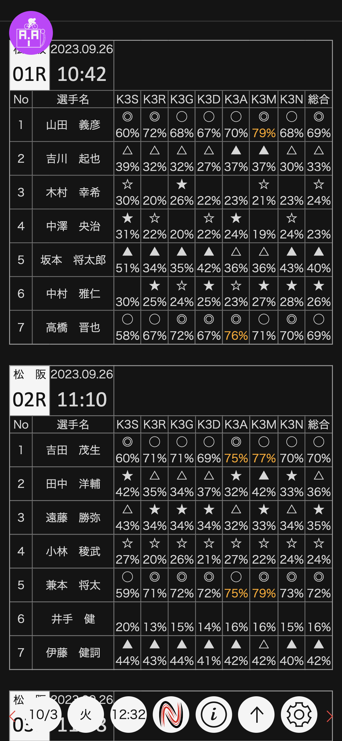 2023年9月26日 松阪 9〜10R